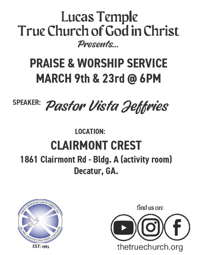 Lucas Temple & St. James Outreach Service at Clairmont Crest
