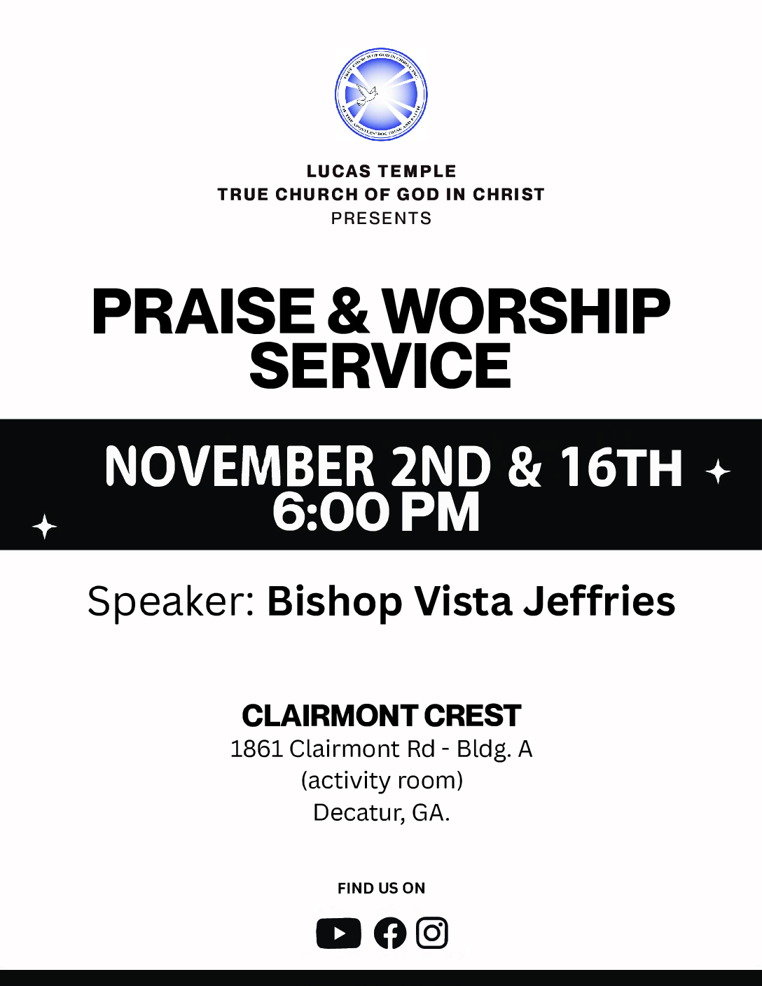 Theme: Honoring Holy Women as God’s Blessing Praise and Worship: Mothers Karina Boyd & Tina Hall and Sisters Katera Boyd & McCaila Hall Offering MC: Mother Hazel Battle Welcome: Sisters Kayleigh Lemons